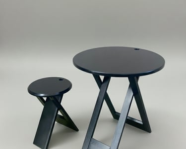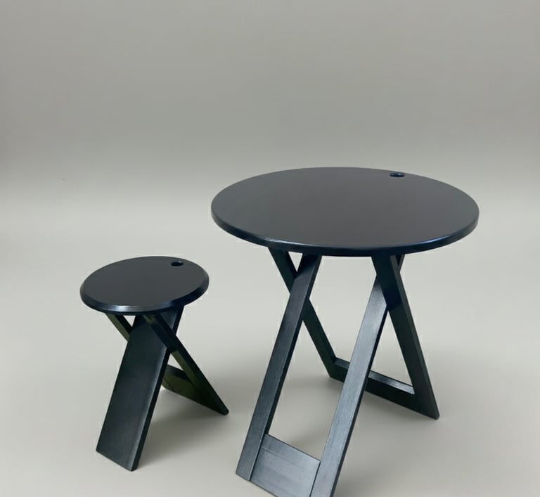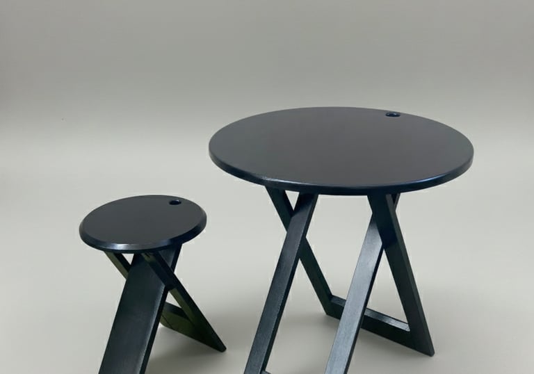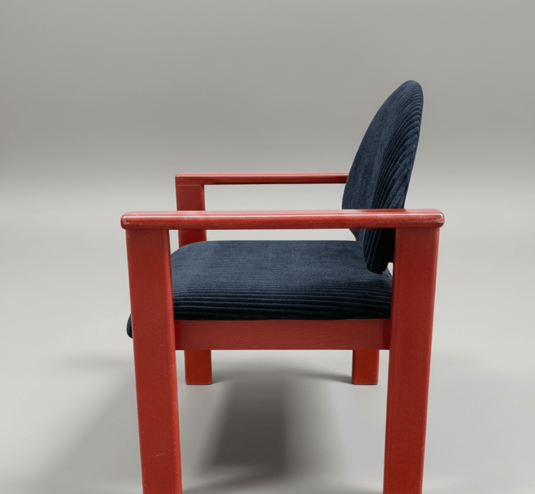 Reprise complète de la structure de cet ensemble signé Adrian Reed, avec ponçage, colmatage et mise en peinture dans une teinte profonde et brillante.