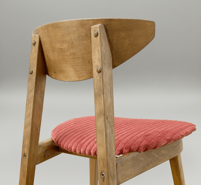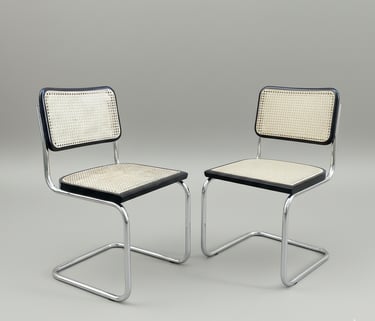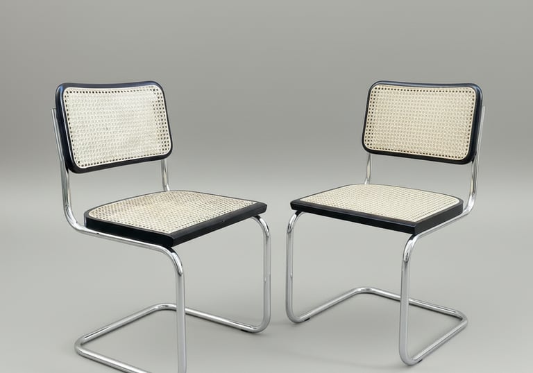 Pour un client souhaitant des chaises B32 ancienne sur le modèle de Marcel Breuer, nous avons opéré la réfection du cannage et ajouté une teinte proche de l'origine en merisier.